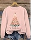 בגדי ריקוד נשים סווטשירטים גראפי עץ חג המולד אותיות יום יומי שרוול ארוך צווארון עגול קצר חולצות רגילות רחוב לבוש ליום קזו'אל דפוס שחור ורוד מסמיק אודם פול תלתן סתיו חורף