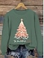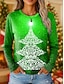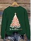 בגדי ריקוד נשים סווטשירט סוודר עץ חג המולד חג מולד יום יומי שרוול ארוך צווארון עגול קצר חולצות רגילות רחוב לבוש ליום קזו'אל פול ירוק כהה תלתן סתיו חורף