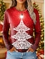 חולצת טריקו לנשים אייל אורן עץ כוכב הדפס שרוולים ארוכים צוואר עגול אדום לבן קז'ואל חגיגי חגיגי הלבשה עליונה