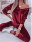 בגדי ריקוד נשים אופנתי סגנון רחוב יומי ערכות מכנסיים שרוול ארוך צווארון V צבע אחיד פאייטים טלאים חג מולד קזו'אל יומי יין אביב רגיל