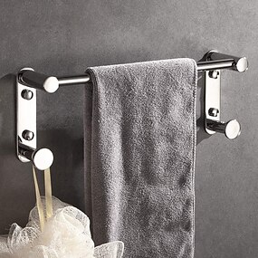 אביזר חומרת אמבטיה בר מגבת נירוסטה עם וו חלוק רב תכליתי צמוד קיר כרום כסוף 1 יחידה