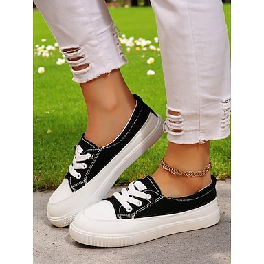נעלי סניקרס קנבס מחליקות בשחור/לבן לנשים - נעלי נינוחות ונוחות ללבוש יומיומי