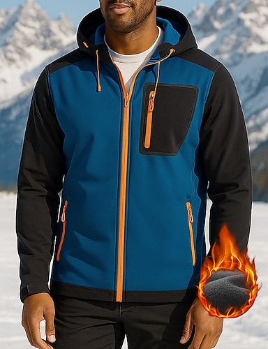 בגדי ריקוד גברים בולם רוח ג'קט לטיולי הליכה ג'קט פליז לטיולי הליכה חורף בָּחוּץ שמור על חום הגוף עמיד למים עמיד מעילי פליז ציד טיפוס מחנאות / צעידות / טיולי מערות שחור כחול כהה כחול ים כתום