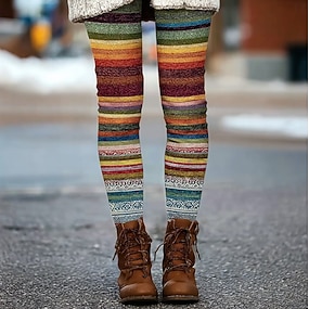בגדי ריקוד נשים חותלות חופשה וינטאג' אופנתי עד לקרסול מותניים גבוהים גראפי קולור בלוק מדפיס שמור על חום הגוף רך נושם גמישות גבוהה בָּחוּץ חופשה יוגה ורדרד אביב סתיו חורף גזרה צרה