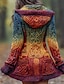 בגדי ריקוד נשים קרדיגן וינטאג' יומי סגנון אתני צבע הדרגתי איש שלג מצולע עם קפוצ'ון כיס כפתורים דפוס שרוול ארוך חולצות ארוכות לִסְרוֹג בָּחוּץ סוף שבוע אודם סתיו חורף