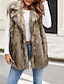בגדי ריקוד נשים וסט מעיל פרווה שמור על חום הגוף נוח פרוות ועורות יום יומי צבע הדרגתי חופשה רחוב קזו'אל לבוש יומיומי ארוך צווארון מתקפל רגיל ללא שרוולים הלבשה עליונה שחור לבן חום סתיו חורף