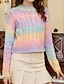 בגדי ריקוד נשים סוודר אופנתי סגנון חמוד סגנון רחוב צבע הדרגתי צווארון עגול קצר סרוג דפוס שרוול ארוך חולצות רגילות לִסְרוֹג יומי חגים ליציאה ורוד מסמיק סתיו חורף