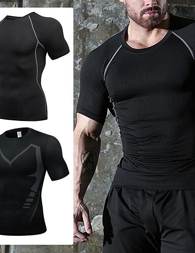 בגדי ריקוד גברים חולצת דחיסה חולצה אתלטית חולצת כושר שרוולים קצרים טי טי קזו'אל בגדי ספורט ומנוחה גראפי ייבוש מהיר רך נושם כושר אמון הליכה ג'וגינג בגדי ספורט לבוש אקטיבי נייבי שחור לבן