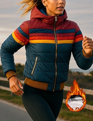 בגדי ריקוד נשים מעיל חורף ז'קט פאפר לרכוס כיס שרוול ארוך צמרות בגדי ספורט ומנוחה סתיו פסים כותנה עמיד חם חוץ נסיעות חופשה בגדי ספורט לבוש אקטיבי שחור כחול כחול כהה
