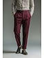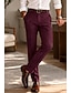 אנשיו של כותנה פשתן חליפות מכנסיים רגילים עֵסֶק חתונה וינטאג' קלסי ונצחי רשמי בורגנדי ירוק כהה אפור בהיר אביב קיץ מכנסיים צבע אחיד רגיל ארוך קשיח