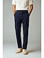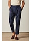אנשיו של כותנה פשתן חליפות מכנסיים רגילים יומי רשמי אלגנטית קלסי יום יומי שחור לבן נייבי כהה אביב קיץ מכנסיים צבע אחיד רגיל ארוך קשיח