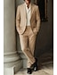 אנשיו של טוקסידו חליפות פשתן חתונה באביב עֵסֶק צהוב ורוד מסמיק אביב קיץ חליפה דש קלאסי משקל קל רשמי אחיד גזרה מחוייטת סט 2 חלקים שני לחצנים עם חזה יחיד