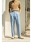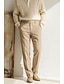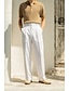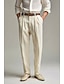 אנשיו של כותנה פשתן חליפות מכנסיים רגילים יומי לבוש רחוב אלגנטית יום יומי נוח לבן אפור בהיר בז' צבע אחיד גזרה מחוייטת ארוך קשיח