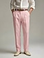 אנשיו של כותנה פשתן חליפות מכנסיים רגילים לבוש רחוב עֵסֶק אלגנטית סגנון רשמי יום יומי לבן ורוד מסמיק בז' צבע אחיד גזרה מחוייטת ארוך קשיח