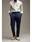 אנשיו של כותנה פשתן חליפות מכנסיים רגילים יומי עֵסֶק אופנתי יום יומי לבן נייבי כהה מרווה צבע אחיד רגיל ארוך קשיח