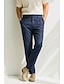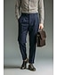אנשיו של כותנה פשתן חליפות מכנסיים רגילים יומי מִשׂרָד ניטראלי אופנתי יום יומי שחור לבן נייבי כהה צבע אחיד גזרה מחוייטת ארוך קשיח