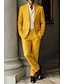 אנשיו של חליפות מסיבה חתונה שלב צהוב אודם אביב, סתיו, חורף, קיץ חליפה דש קלאסי אופנתי טלאים גזרה צרה סט 3 חלקים כפתור אחד עם חזה יחיד