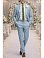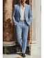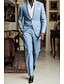 אנשיו של טוקסידו חליפות פשתן מפלגה חתונה כחול סקיי מרווה אביב קיץ חליפה דש קלאסי אופנתי משקל קל אחיד גזרה מחוייטת סט 2 חלקים שני לחצנים עם חזה יחיד