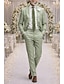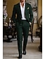 אנשיו של חליפות פשתן חליפות עסקים קזו'אל עֵסֶק בורגנדי ירוק כהה אביב קיץ חליפה דש רשמי דש קלאסי אופנתי יומי אחיד גזרה מחוייטת סט 2 חלקים שני לחצנים עם חזה יחיד