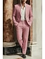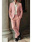 אנשיו של טוקסידו חליפות פשתן קזו'אל חצי רשמי ורוד מסמיק כחול סקיי אביב קיץ חליפה דש קלאסי יומי משקל קל אחיד גזרה צרה סט 2 חלקים שני לחצנים עם חזה יחיד