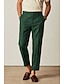 אנשיו של כותנה פשתן חליפות מכנסיים רגילים בית רשמי אלגנטית יום יומי קז'ואל ירוק כהה בז' כחול בהיר אביב קיץ מכנסיים צבע אחיד רגיל ארוך קשיח