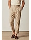 אנשיו של כותנה פשתן חליפות מכנסיים רגילים רשמי פְּגִישָׁה משקל קל קלסי יום יומי קז'ואל מרווה בז' קיץ מכנסיים צבע אחיד רגיל ארוך קשיח