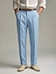 אנשיו של כותנה פשתן חליפות מכנסיים רגילים קזו'אל עֵסֶק וינטאג' יומי עסקים שחור בז' כחול בהיר אביב קיץ מכנסיים צבע אחיד גזרה מחוייטת ארוך קשיח