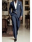 אנשיו של חליפות פשתן חליפות עסקים חתונה באביב נשף רקודים שחור כחול נייבי אביב חליפה דש קלאסי משקל קל רשמי אחיד גזרה מחוייטת סט 2 חלקים שני לחצנים עם חזה יחיד