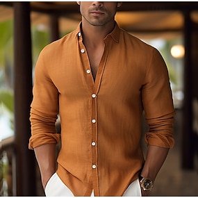 בגדי ריקוד גברים חולצה חולצת פשתן חולצת קיץ ביגוד חוף חולצה עם כפתורים אחיד חופשה קוריז לבן ורוד מסמיק כחול כתום שרוול ארוך דש אביב קיץ ביגוד