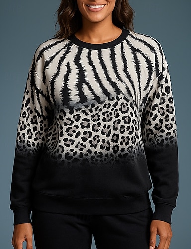 בגדי ריקוד נשים סווטשירט עם סווטשירט חולצות קז'ואל שרוול ארוך צמרות בגדי ספורט ומנוחה סתיו צבע הדרגתי אופנתי חוץ נסיעות בגדי ספורט לבוש אקטיבי שחור