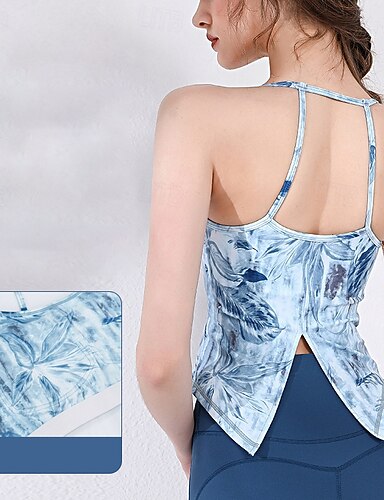 בגדי ריקוד נשים חזיית יוגה גופיית יוגה קרופ תחתונים ייבוש מהיר תמיכה בינונית נושם פאד גב חשוף מדפיס ספורט לבוש אקטיבי שחור פול חדר כושר אתלטיקה פילאטיס