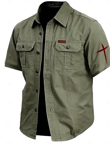 בגדי ריקוד גברים צלב חולצות עבודה חולצה מערבית חולצת מטען שרוולים קצרים יום יומי טקטי ספורט וחוץ ליציאה קיץ אביב צווארון מתקפל דפוס ירוק צבא חאקי כחול כהה בז'
