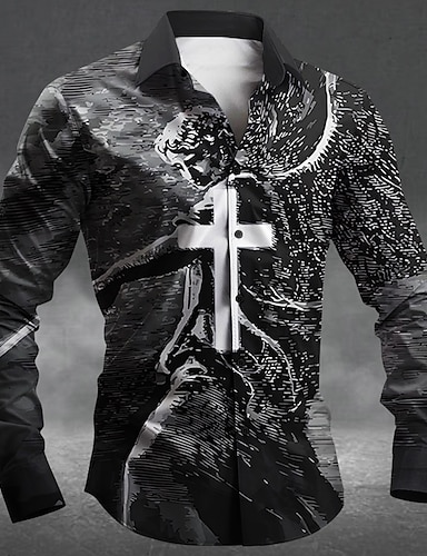 חג ליל כל הקדושים בגדי ריקוד גברים צלב יֵשׁוּעַ תחפושות ליל כל הקדושים חולצה חולצה עם כפתורים שרוול ארוך סגנון גותי כהה בָּחוּץ חגים קיץ אביב צווארון מתקפל הדפסת תלת מימד חולצות צווארון שחור