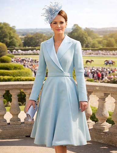 גזרת A באורך הקרסול השמלה המפלגה שמלת קוקטייל שמלת אורח לחתונה שמלה לאם הכלה שרוול 4\3 צווארון חולצה אלגנטית וינטאג' שנות ה-50 מסיבת ערב אורחת חתונה לבוש עבודה סאטן עם קפלים