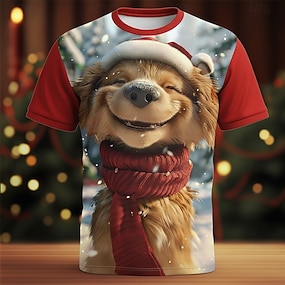 חג המולד בגדי ריקוד גברים כלב סנטה קלאוס חולצה קצרה שרוולים קצרים חולצה קצרה הדפסת תלת מימד צווארון עגול קצר חולצה יומי מעצב אומנותי חופשה מפלגה רחוב לבן אודם כל העונות ביגוד S M L XL XXL XXXL