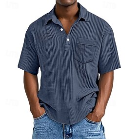 בגדי ריקוד גברים כפתור אפ פולו חולצת POLO קזו'אל חגים דש שרוולים קצרים אופנתי בסיסי קולור בלוק לַחְצָן קיץ רגיל פול חאקי כחול כהה אפור כפתור אפ פולו