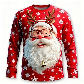 חג המולד בגדי ריקוד גברים סנטה קלאוס 3D מצחיק חולצה קצרה שרוול ארוך חולצה קצרה הדפסת תלת מימד צווארון עגול קצר חולצה אופנתי בסיסי 3D רחוב קזו'אל יומי שחור אודם פול קיץ אביב ביגוד S M L XL XXL XXXL