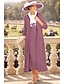גזרת A באורך הקרסול שמלת בלייזר שמלה רשמית שמלה לאם הכלה שרוול ארוך צווארון חולצה אלגנטית וינטאג' רשמי אורחת חתונה קנטקי דרבי שיפון סאטן ג'אקרד עם פפיון(ים) קפלים פרח