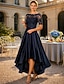 גזרת A א-סימטרי באורך הקרסול השמלה המפלגה שמלת קוקטייל שמלת אורח לחתונה שמלה לאם הכלה שרוולים קצרים סקופ צוואר אלגנטית גבוה נמוך אורחת חתונה מסיבת החתונה סאטן תחרה עם פפיון(ים) קפלים אפליקציות