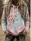 בגדי ריקוד נשים Pullover קפוצ'ונים ורד וינטאג' סגנון רחוב יום יומי שרוול ארוך עם קפוצ'ון חולצות רגילות לבוש ליום קזו'אל ספורט שרוך כיס דפוס תלתן אביב סתיו חורף