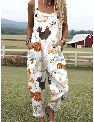בגדי ריקוד נשים סרבלים פעיל פרחוני ללא שרוולים הארם שרוך עם כיס חופשה רחוב מונח בצורה רפויה שחור לבן פול קיץ