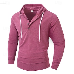 בגדי ריקוד גברים חולצה קצרה חולצת הנלי טי שירטס טופ טי שרוול ארוך עם קפוצ'ון קיץ & אביב אחיד אופנתי מעצב בסיסי שרוך כפתורים חופשה רחוב ליציאה שחור לבן תלתן חולצה עליונה לגברים