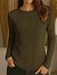 בגדי ריקוד נשים חולצה אחיד אלגנטית וינטאג' טרופי שרוול ארוך צווארון עגול קצר חולצות רגילות יומי חגים ליציאה שחור לבן יין ירוק צבא פול אביב סתיו