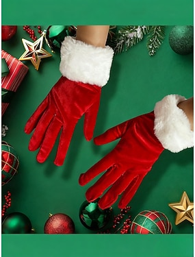 כפפות קטיפה לחג המולד לנשים עם שרוולי פרווה מלאכותית, כפפות חג אדומות לחגיגות חגיגיות, מושלמות למסיבות חורף ואירועי חג המולד