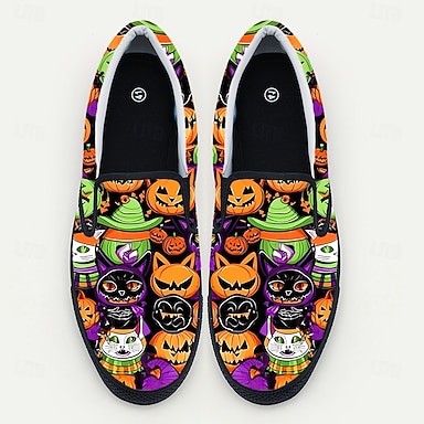 נעלי סליפ-און לגברים בסגנון ליל כל הקדושים עם דלעת ומפלצת - נעלי לואפרס צבעוניות לפסטיבלים למסיבות תחפושות ולבגדי רחוב