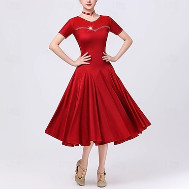 ריקודים סלוניים שמלה קריסטלים / אבנים נוצצות בגדי ריקוד נשים הצגה לבוש יומיומי חצי שרוול כותנת קריסטל