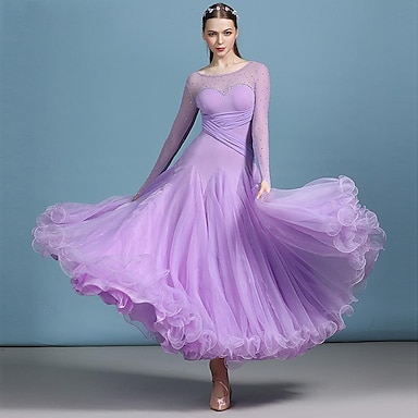 ריקודים סלוניים שמלה ריינסטון צבע טהור בגדי ריקוד נשים הצגה הדרכה שרוול ארוך פוליאסטר