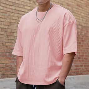 בגדי ריקוד גברים חולצה קצרה חולצת שרירים טי סריג צלעות חולצה ארוכת שרוולים שרוול ארוך צווארון V קיץ & אביב אחיד אופנתי מעצב יום יומי רחוב ספורט חגים שחור לבן ורוד מסמיק חולצה עליונה לגברים