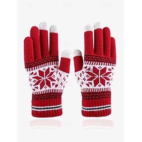 כפפות חורף סרוגות פתית שלג לחג המולד - כפפות חג אדומות חמימות ונעימות לנשים וגברים - מושלמות למזג אוויר קר ותלבושות חגיגיות