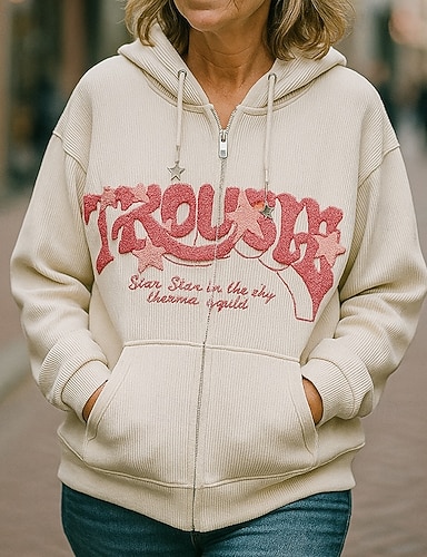 בגדי ריקוד נשים קפוצ'ון עם סוודר סווטשירט קז'ואל עם רוכסן גדול מדי שרוול ארוך צמרות בגדי ספורט ומנוחה סתיו גראפי אופנתי אגבי רכיבת אופניים ריצה בגדי ספורט לבוש אקטיבי לבן ירוק אפור
